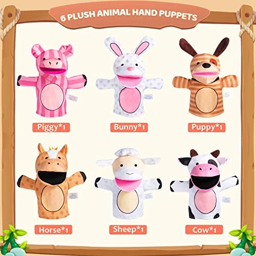 - SUPER VALUE PACK. 6 Animal hand puppets for kidsโ Cow, Sheep, Horse, Puppy, Piggy, Bunny!