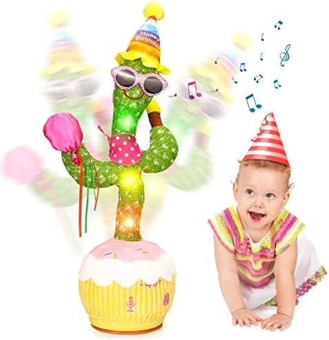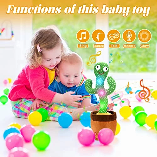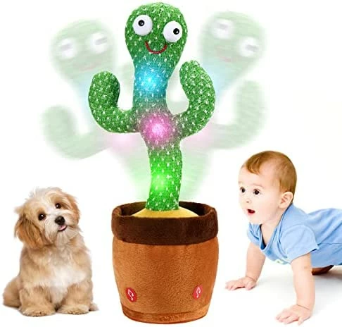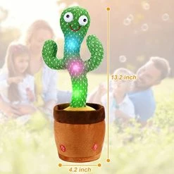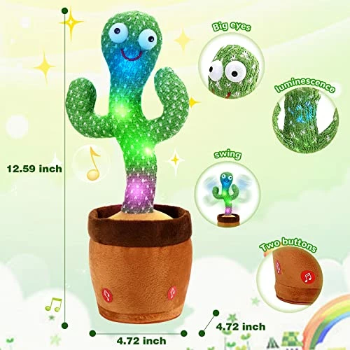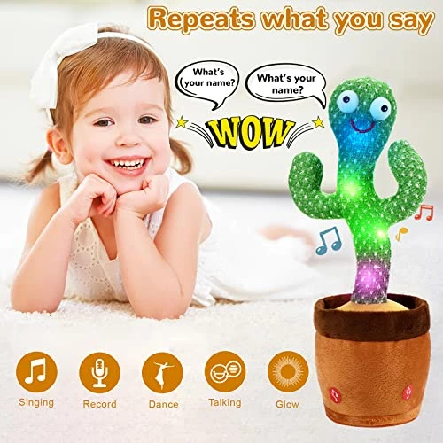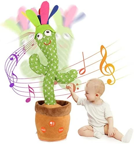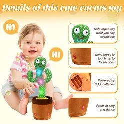 - Eye Catching & Attractive: Our dancing cactus toy has attractive appearance which ensures to give attraction to your children. Talking cactus toy dances for a few hours which amuse your children. Cactus baby toy has Heavy Duty Knitted Fabric material, cute in shape, and furry in appearance.