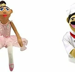 The ballerina puppet is so pretty. It looks almost real! Wooden stick to move arm & has hand slot in the mouth to talk. It is so cool. Itβs so well made & itβs so stinking cute. They have other characters as well. We have ordered many & my girls played with these almost everyday for 3 years straight. They are 10yrs old now & still play with the puppets. So well made & worth every penny!