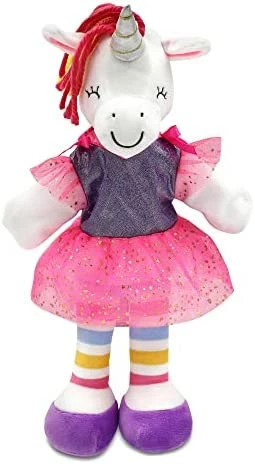 I bought this puppet for Shea, my 18 month old granddaughter and it was a big hit. She is too young to use it right now on her own but loves when mommy and daddy uses it to entertain her. Aria the Alpaca is fluffy soft and gets lots of hugs and kisses from Shea.