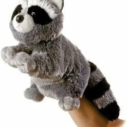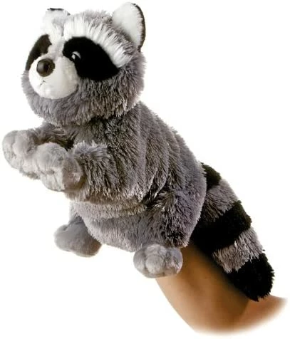 UPDATE: Oh, the poor little Bandit! Bandit has been Bingo’s security blanket, humping companion, BFF, and “only other dog in the house” until we got a real-live lifewire little dog, Doobie, who is a Jack Chi. Doobie is one high-energy chewing fool. Doobie has gotten up inside of Bandit and pulled his guts out of his butt and also chewed his eyes out, leaving holes. Bingo is not happy and so is trying to tug his dear Bandit away from Doobie, so I knew Bandit was not going to be long for the world. I ordered a new Bandit for Bingo, and he is thrilled, but I’m going to have to put him up until Doobie is over his puppy stage. But this Bandit racoon puppet is a fantastic purchase for a little dog.ORIGINAL REVIEW: Move over Gator. Hit the box, Fox. Bandit has arrived.Our 10-week-old Chiweenie puppy wants to bite-shake play, and even though he’s careful not to be too vicious with DH’s hand, he was breaking the skin. I got this puppet as a way to protect us from those sharp little puppy teeth.Bingo went nuts for Bandit, and we did, too. On my hand, I don’t like the fit on my thumb, which tends to slide out of the arm, but it seems to be fine on DH’s larger hand. I just lift Bandit by the back and march him up and down, and the puppet is floppy enough, but also firm enough, to seem like a living critter.I can’t emphasize enough how nice the contrast between his nose and white snout is. When we say “bite his nose,” he goes right for that little black nose. The nose and the eyes are sewn in very well so I don’t worry so much about our dog pulling them off and choking them. Another thing really nice about this puppet is that it has some movement to it even when we are not assisting him in playing with it. He will pick it up and shake it, carry it around like it’s his prize possession (which is funny, because it’s bigger than he is), and put it in his “room” (a small rug) with his collection of squirrels and such.UPDATE: Oh, Bandit is such a hit! Bingo sleeps with Bandit, pees on Bandit, madly humps Bandit, chases him all over the house when we throw him, carries him proudly to show “Bingo too” in the mirror, jumps up into the back of the loveseat in the living room with Bandit so Bandit can look out the window with Bingo at the neighbors passing by. Bandit has had to go in the washing machine quite a few times now, and with vicious chiweenie tug-of-war play, poor Bandit’s scalp is starting to come unsewn. I can sew him up by hand and he’ll be fine, but I’m already thinking I’d better get another Bandit to have on hand for when Bingo’s BFF is in complete shreds! Bandit has shrunk some with washing, so it’s hard to get a large adult hand into him, but he’s still more than doing his job. He and Bingo now are about the same size. Bingo’s eight months old and seven pounds.