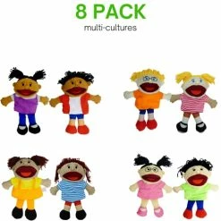 - 8 Pack – Hand puppets for kids, with movable mouth. Comes in variety of skin colors