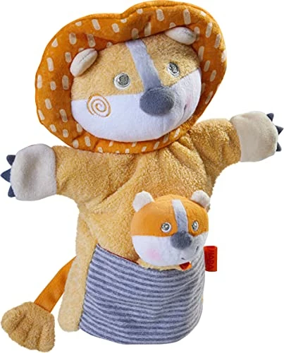 - Set includes lion hand puppet with pouch to hold it’s cub which is also a finger puppet.