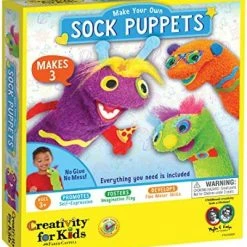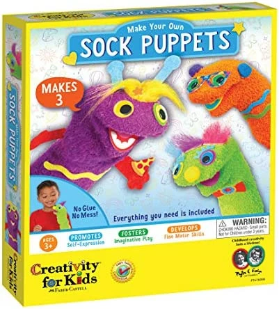 Great product with lots of materials to use to customizing the sock puppetsβ¦over and over again! Which is great because my two year old loves pulling the puppetβs features off and redoing them with something new.