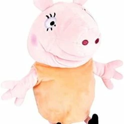 A talking Daddy Pig hand puppet for a meager $4.99!!! AND to boot he is grade A adorable!! He is tricky for little ones to make talk as his button is in his lower mouth/tongue area. It is there so if u have your hand in the back working him as he is intended ,A hand puppet, you can make the mouth motions AND the pre set sounds. I’m not sure why a reviewers think this placement is awkward. Some people just don’t read I guess lol.Daddy Pigs phrases (most) are … “I’m strong” ** “this is fun!” ** “Whooooahhh” ** “oh my!” ** the Peppa Pig theme song ** and several more and voice is as Brits say SPOT ON !!! My almost 4 yr old girl is soooo in LOVE with this. Just buy him!!
