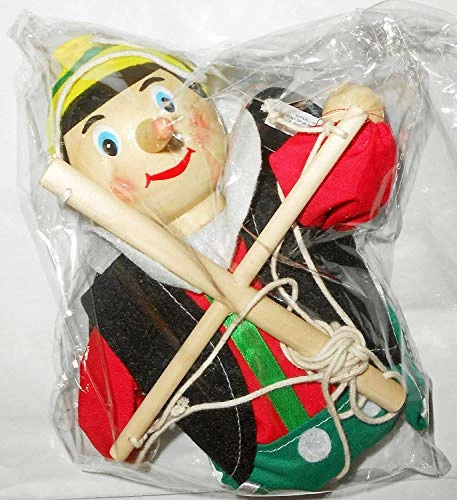 - Pinocchio Marionette measures approx. 14″ tall not counting the strings