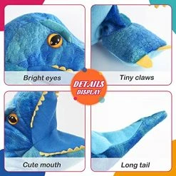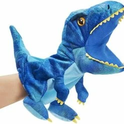 - REALISTIC DINOSAUR STYLE: This dinosaur plush puppet was made with movable mouth, gorgeous blue fur soft, realistic big eyes, foldable and compressible body, which is make this T-rex looks vivid. Are you ready? The little dinosaur adventure tour officially opened!