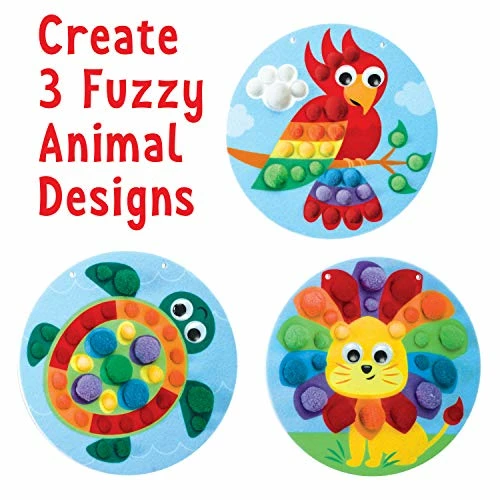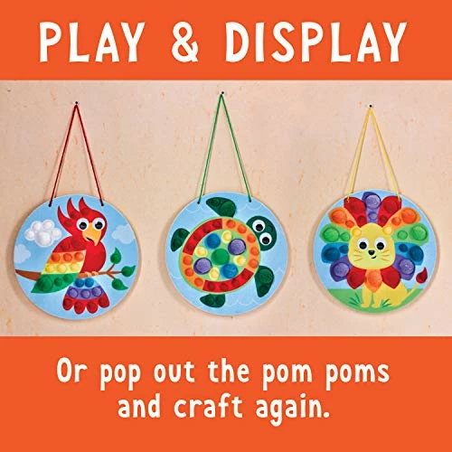- POM POM CRAFT – Use pom poms to create animal designs on the front and fun designs on the back! Simply insert pom poms into the pre-punched felt to create designs you will want display or complete this craft again by just pushing out the pom poms!