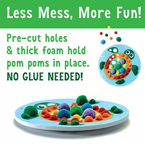- NO MESS PRESCHOOL TOYS AND GAMES – Creativity for Kids Pom Pom Pictures can be enjoyed at home or on-the-go! Thick foam holds pom poms in place with no glue needed to complete this project, making it a perfect take along kids travel activity