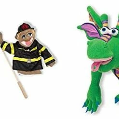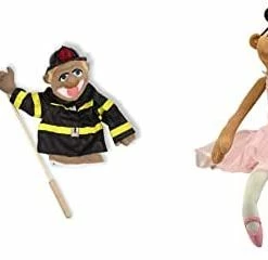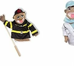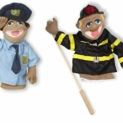 - Whimsically designed police officer and firefighter puppets inspire “animated” play