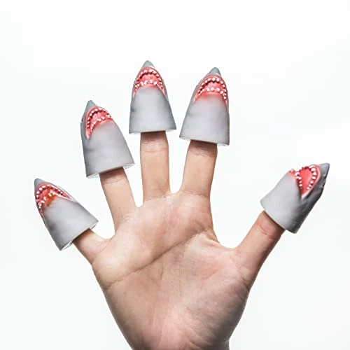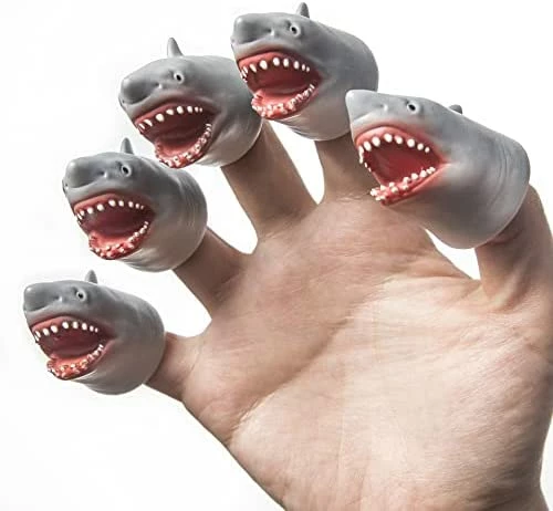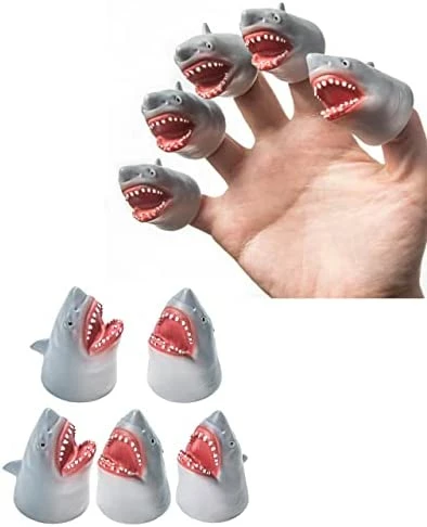 - Finger puppet set includes 5 shark heads. Finger puppet size suitable for children and adults.