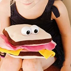 Adorable sandwich hand puppet!Iβm using this with my kindergarteners for online instruction and I know theyβll love it.I removed one star from the review for one reason. The slots for your hand/fingers are way too big and your hand can get tired using it. I included a picture how I tacked it with simple stitches for my thumb on the lower slot and four fingers on the upper slot.Love this puppet!